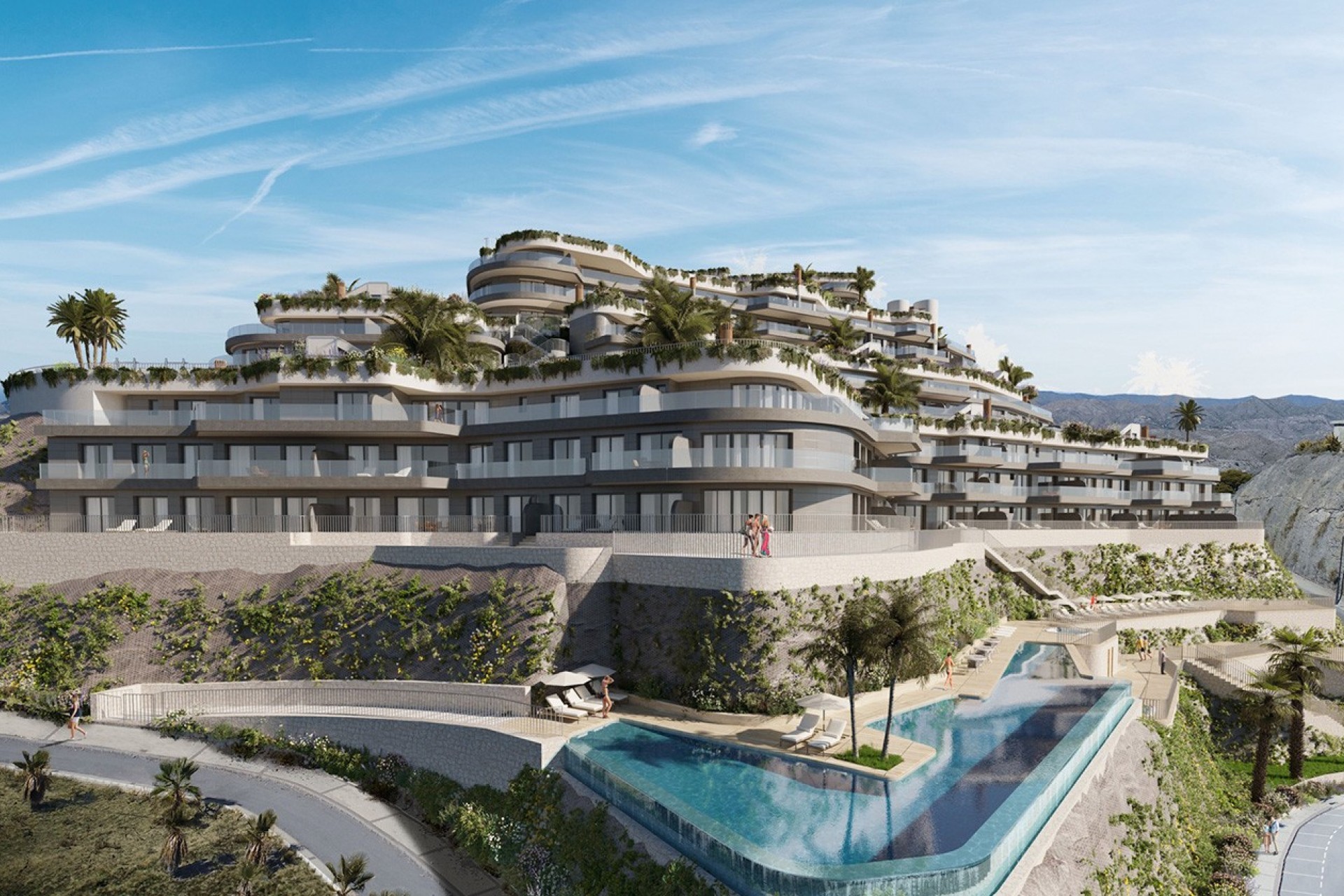 The residential complex was designed to be totally adapted to the orography and respectful of the fantastic surroundings, in which the homes will climb in a spiral, enveloping and adapting to it. The houses run along the mountain in a natural and fluid way, with the complexity that this implies at an architectural level. To adapt them to the orography, each apartment has been designed one by one. There are few houses that are exactly the same. The vegetation and the shades in accordance with the colors of the mountain complete the sensation of fusion with the environment.