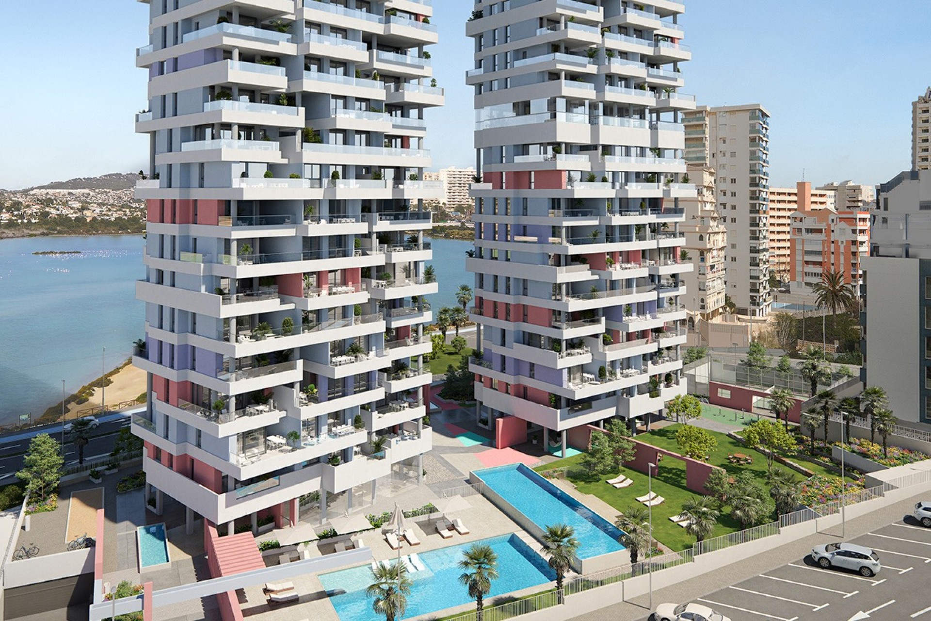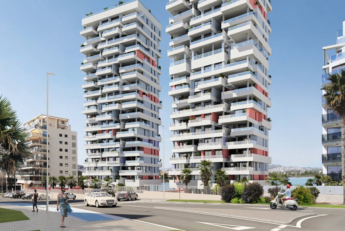 Isea views, a new residential complex in Calpe with two 18-storey towers with homes designed for outdoor living. Plots in the sky overlooking the sea and the salt flats of Calpe.