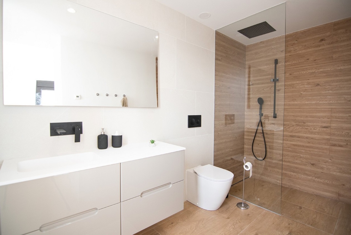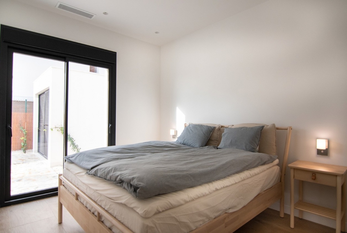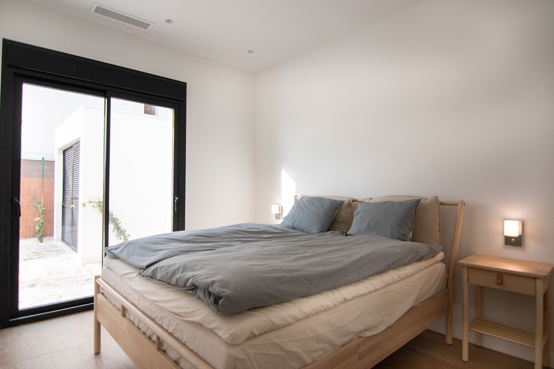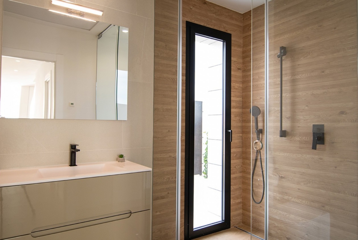 Located 200 metres from supermarkets, restaurants and bars, you will find these spacious 4 bedroom villas in La Herrada, Los Montesinos. Each comes with private pool and to a high standard. The average plot size is 435 m2.  As you enter the villa, you will find an entrance hall with a wardrobe for hanging jackets, etc. Opposite you will find an open plan kitchen, a dining room and a living room. The large windows bring a lot of natural light into the property. Behind the kitchen you will find two spacious double bedrooms, a bathroom and a practical utility room under the staircase to the first floor.  On the first floor you will find another guest toilet, bathroom and the master bedroom. The master bedroom has an en-suite bathroom. From the master bedroom and a hallway you access the 30 m2 solarium, from where you overlook the private terrace, the garden and the surroundings, including the salt lake of Torrevieja and the natural lagoon.  Each plot offers private parking, storage room and plenty of terrace space plus a 4×8 metre private swimming pool.  The villas come with 4 bedrooms as standard. However, you also have the possibility to remove one of the bedrooms on the ground floor and have an even larger kitchen, dining room and living room.  The villas are located in the charming village of Los Montesinos. Here you will find a good selection of restaurants, supermarkets and shops. The beautiful square next to the town hall offers the real Spanish atmosphere. A short drive takes you to Torrevieja, Ciudad Quesada or the stunning sandy beaches of La Mata.