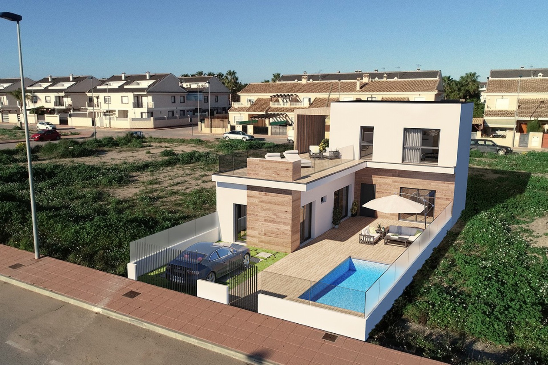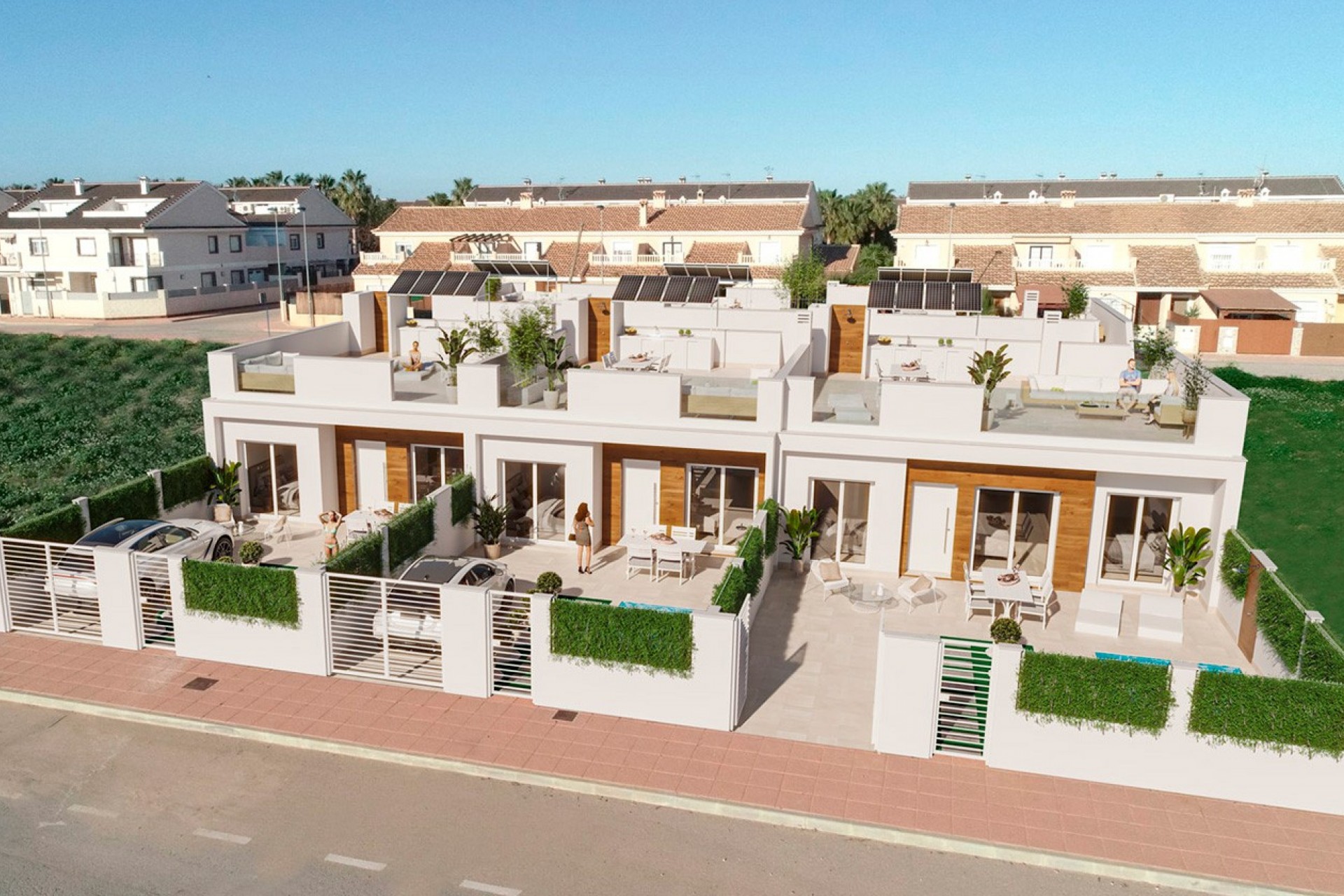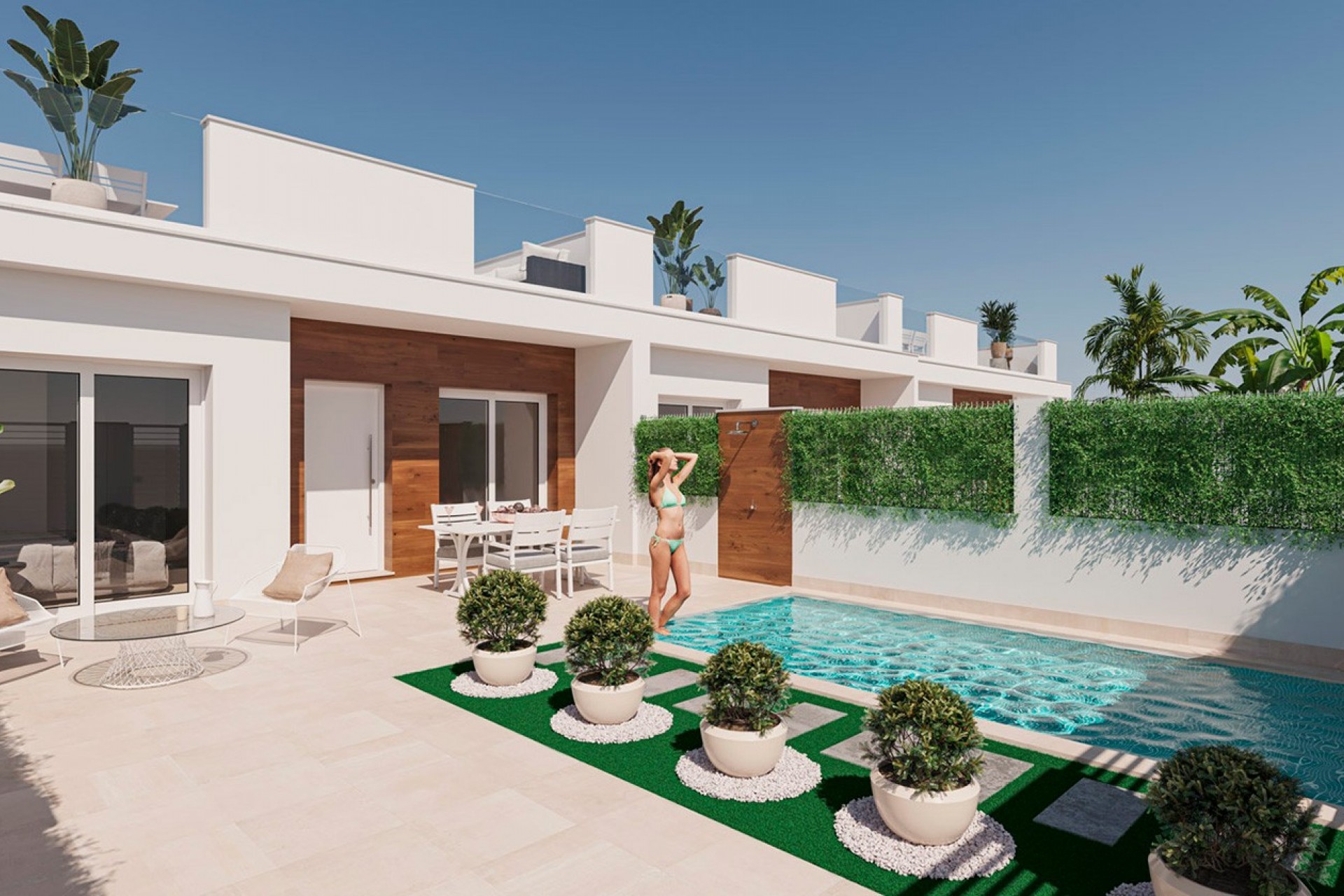 Senda de los Flamencos is a luxury complex of 24 single-story villas with private pool, terraces and solarium that allows you to enjoy all hours of sunshine, every day of the year.  Each property has 2 or 3 bedrooms and 2 full bathrooms. The property has been designed with a contemporary style and an open concept, with equipped kitchen and living-dining room. The property has many extras included.  All necessary daily amenities are within walking distance, and the local golf courses are only a 5 minute drive away. Ideally located close to the beach and the town center, making it a perfect investment opportunity.          Contact us for more information, or join one of our no-obligation tours to visit this wonderful project.