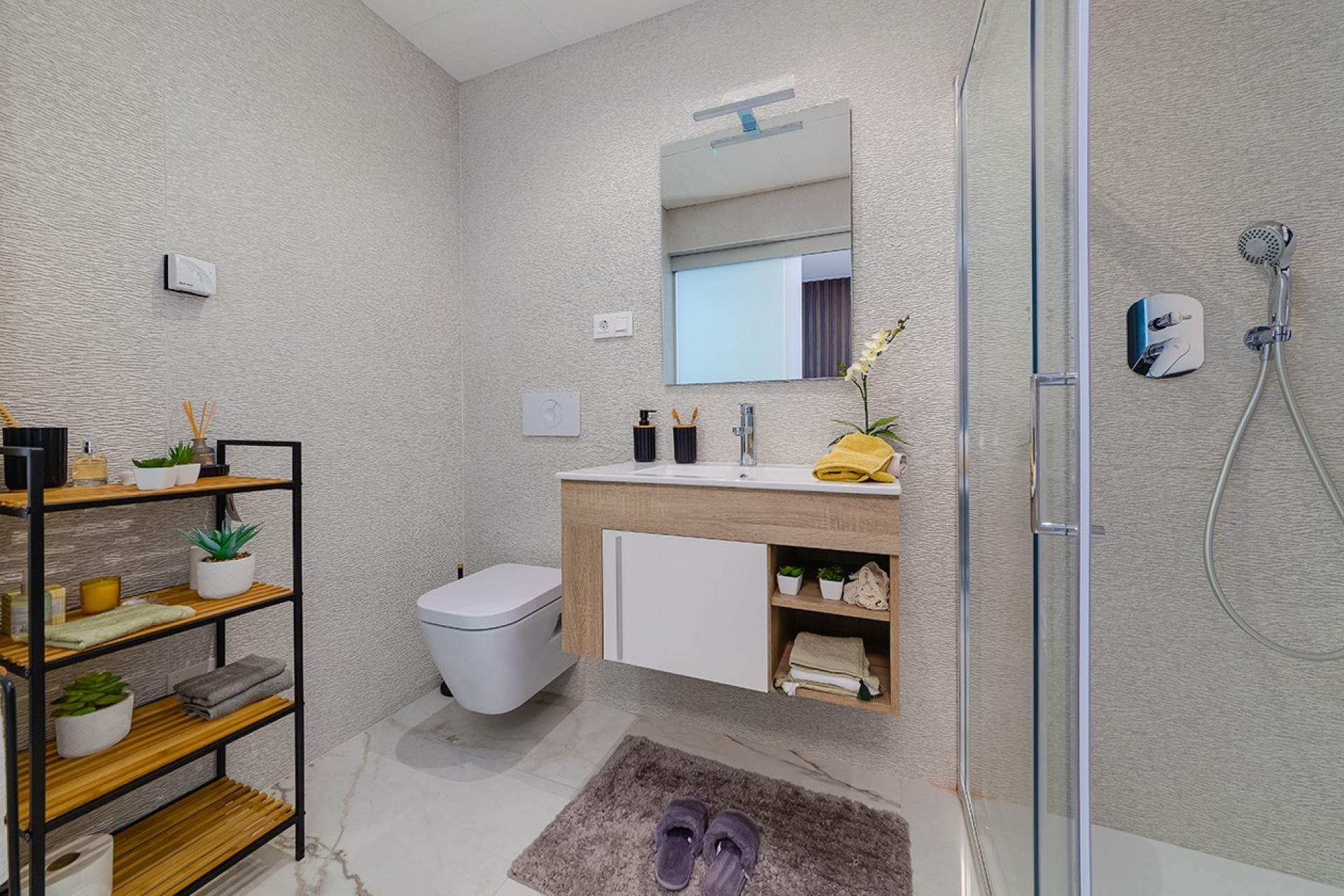 Last Units Available! There are only 4 units left in this exclusive development, and 3 of them are ready to be delivered. We have two ground floor flats with a private terrace, each with 2 bedrooms and 2 bathrooms, perfect for enjoying the Mediterranean climate in a modern and comfortable environment. In addition, two stunning penthouses with private solarium are available: one with 2 bedrooms and 2 bathrooms, ideal for those looking for an intimate and cosy space, and the other with 3 bedrooms and 2 bathrooms, perfect for families or those who need more space. These penthouses offer spacious terraces and a private solarium to enjoy panoramic views and unforgettable sunsets.