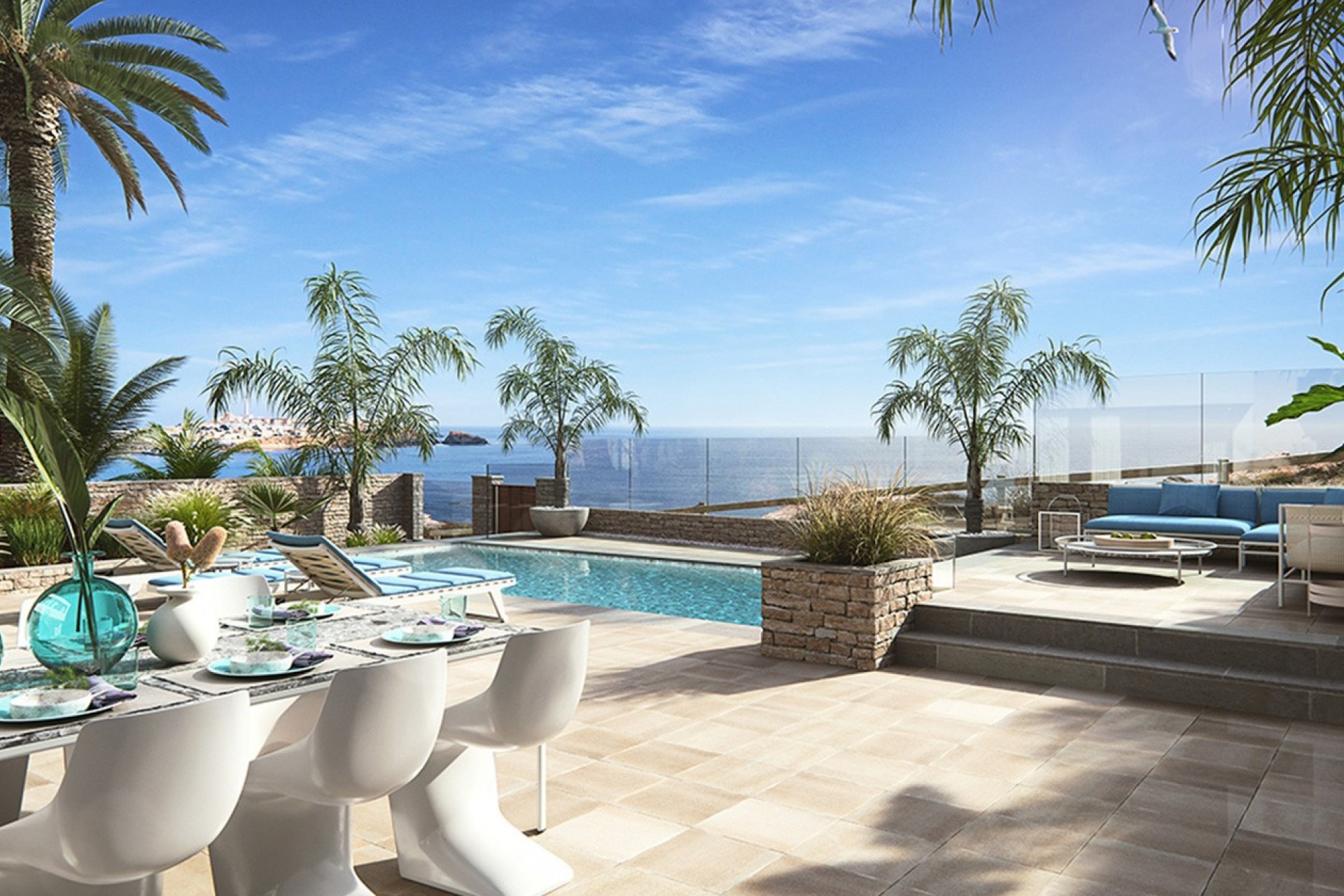 The Villas are located in Cala Medina, known for its wild cliff, is undoubtedly a paradise for the view where you can enjoy the immensity of the Mediterranean Sea, the views of the emblematic lighthouse, beautiful sunrises and sunsets without any housing that prevents it.