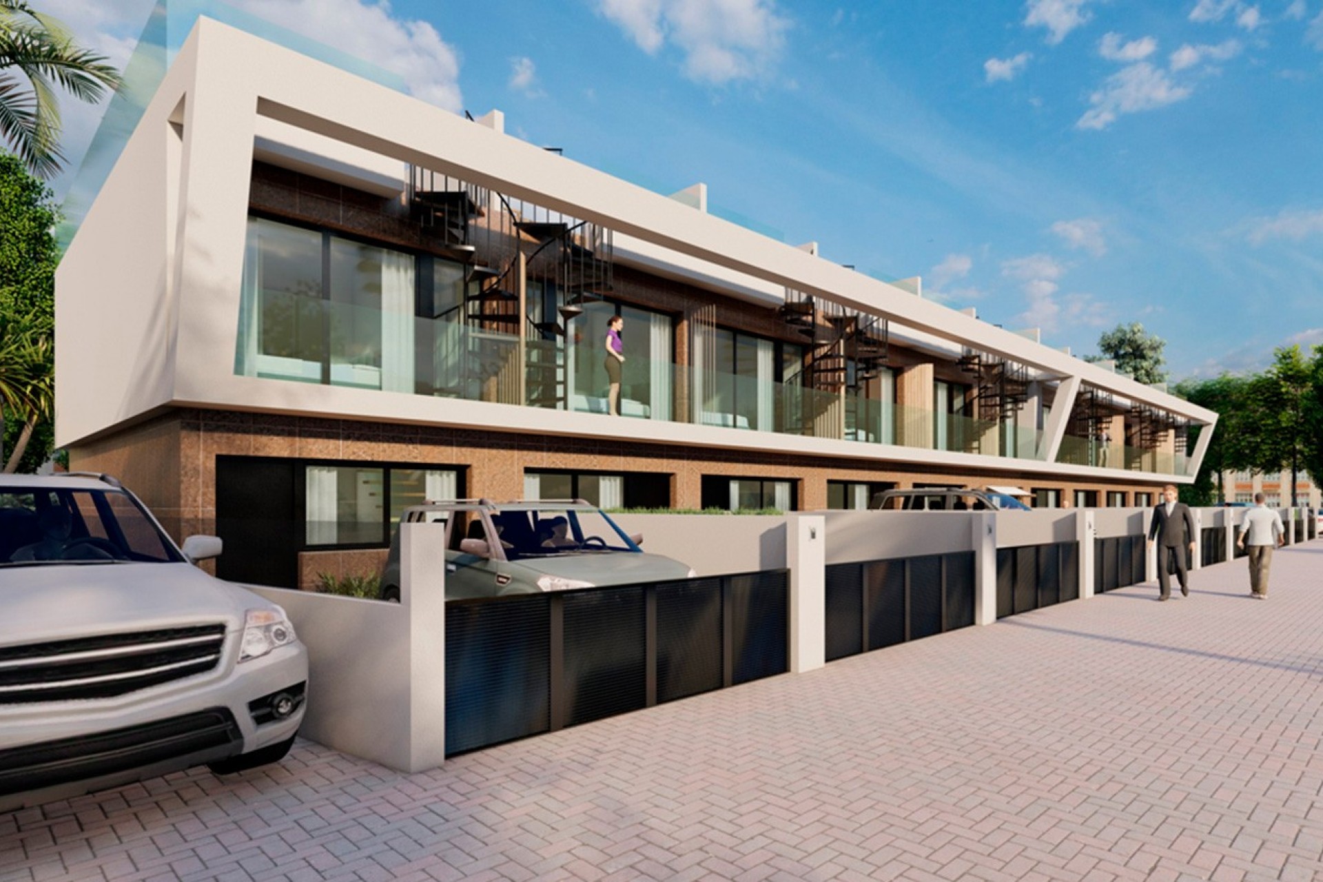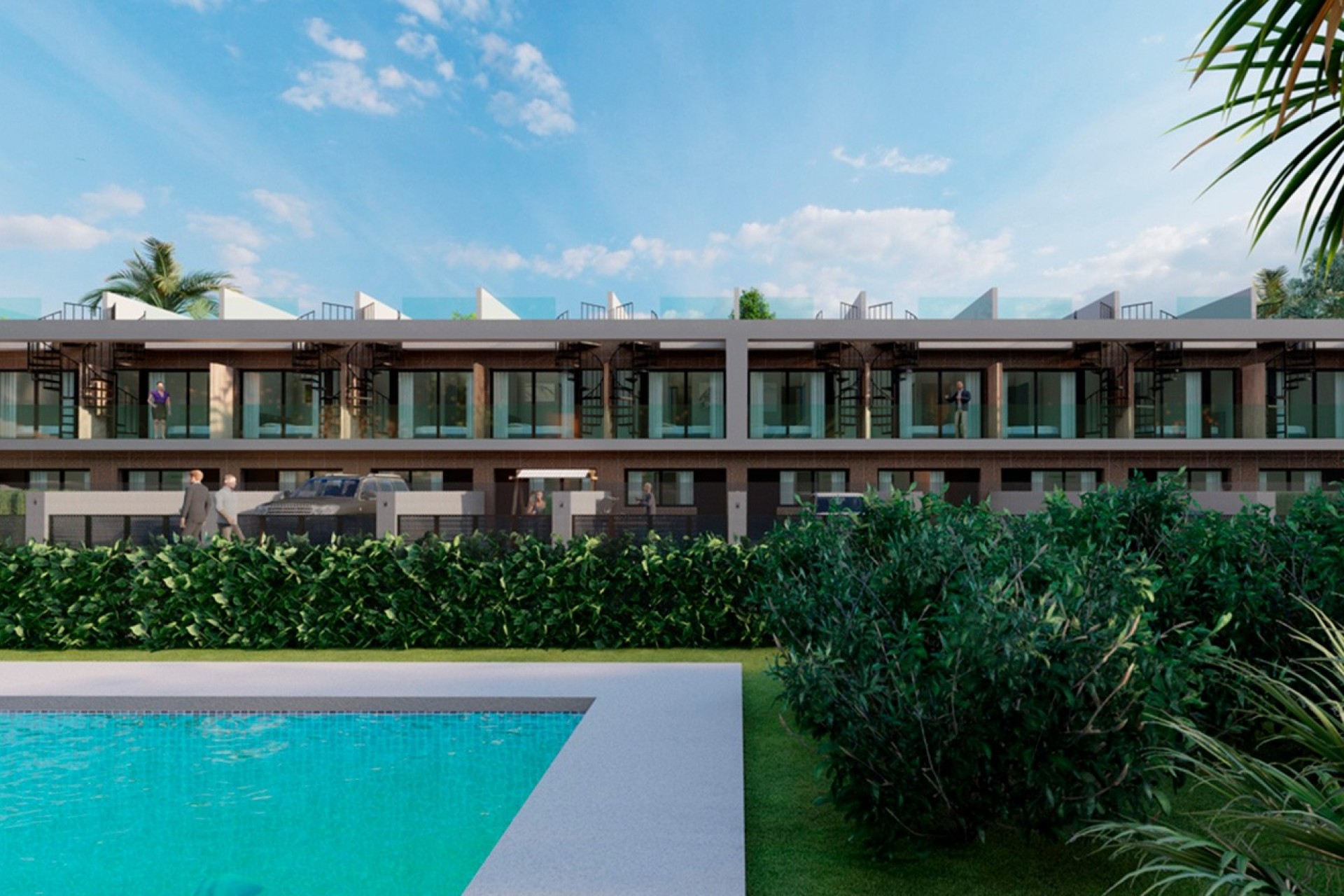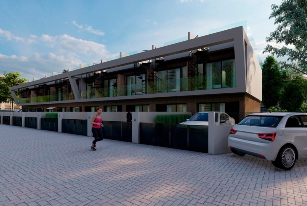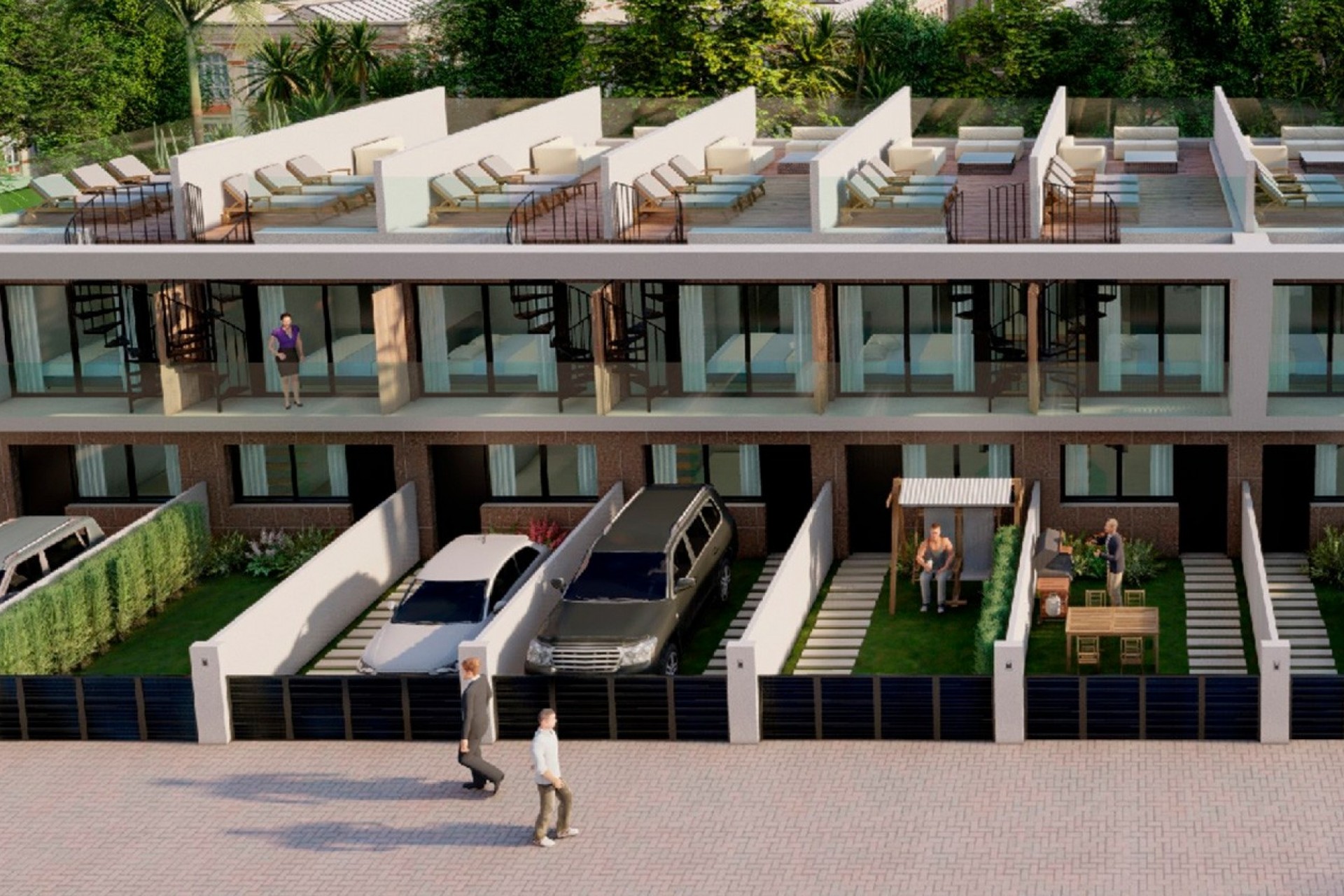 The residential Zielo has the particularity of not having neighbors behind or in front, overlooking the pool that has the residential. This model has two interior distribution options, obtaining up to 3 bedrooms and a solarium terrace with private access from the house. In one of the bedrooms, there is a large glass front that brings natural light to the house almost all day long. The houses are distributed in two heights, duplex type, with a staircase of steps in linear and simple finishes. Outside, it has a 25 m2 parking garden and a backyard. It has a communal swimming pool. The house can be distributed with 2 or 3 bedrooms, with semi-independent or American kitchen, 3 bathrooms and private solarium in each house. The interior finishes of the house will consist of porcelain materials of warm tones of Porcelanosa, with high kitchen furniture and appliances included. Please contact us for more information, or join one of our no-obligation tours to visit this wonderful project.