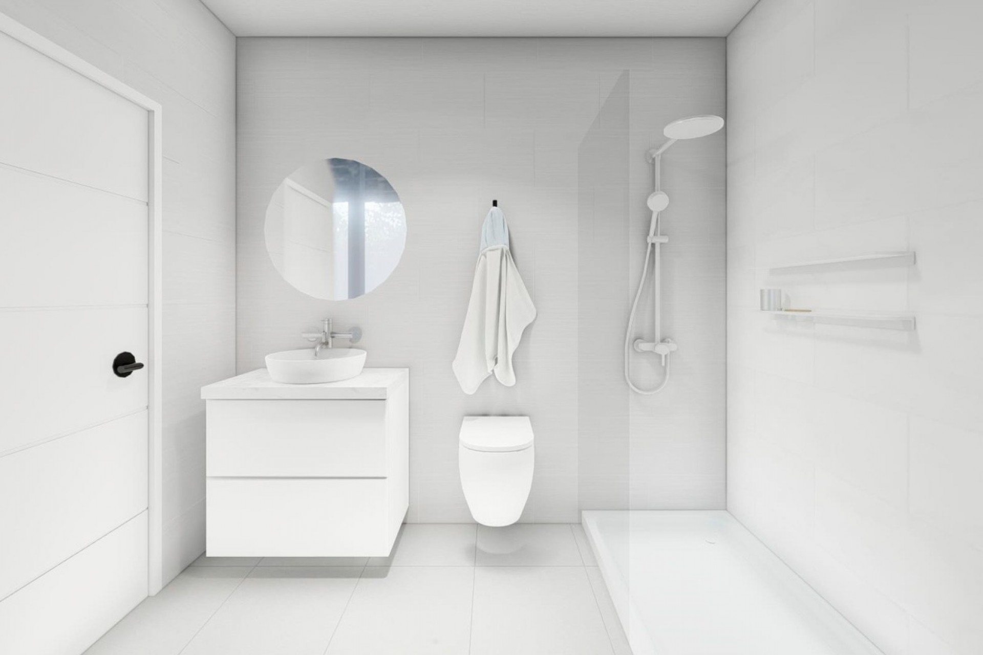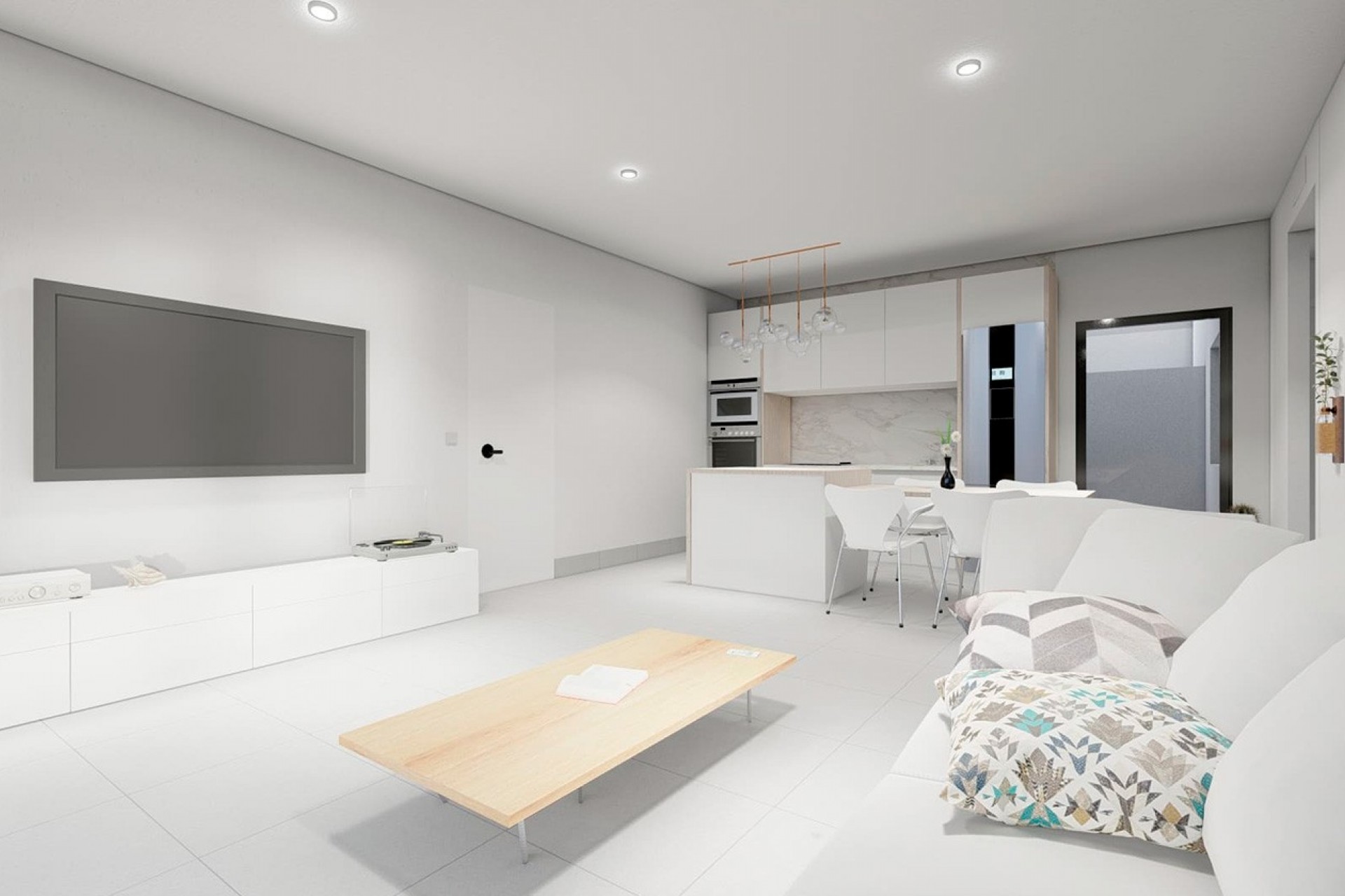 Modern single storey detached villas with private pool and solarium, 3 bedrooms, 2 bathrooms and laundry room, on plots of 304m².