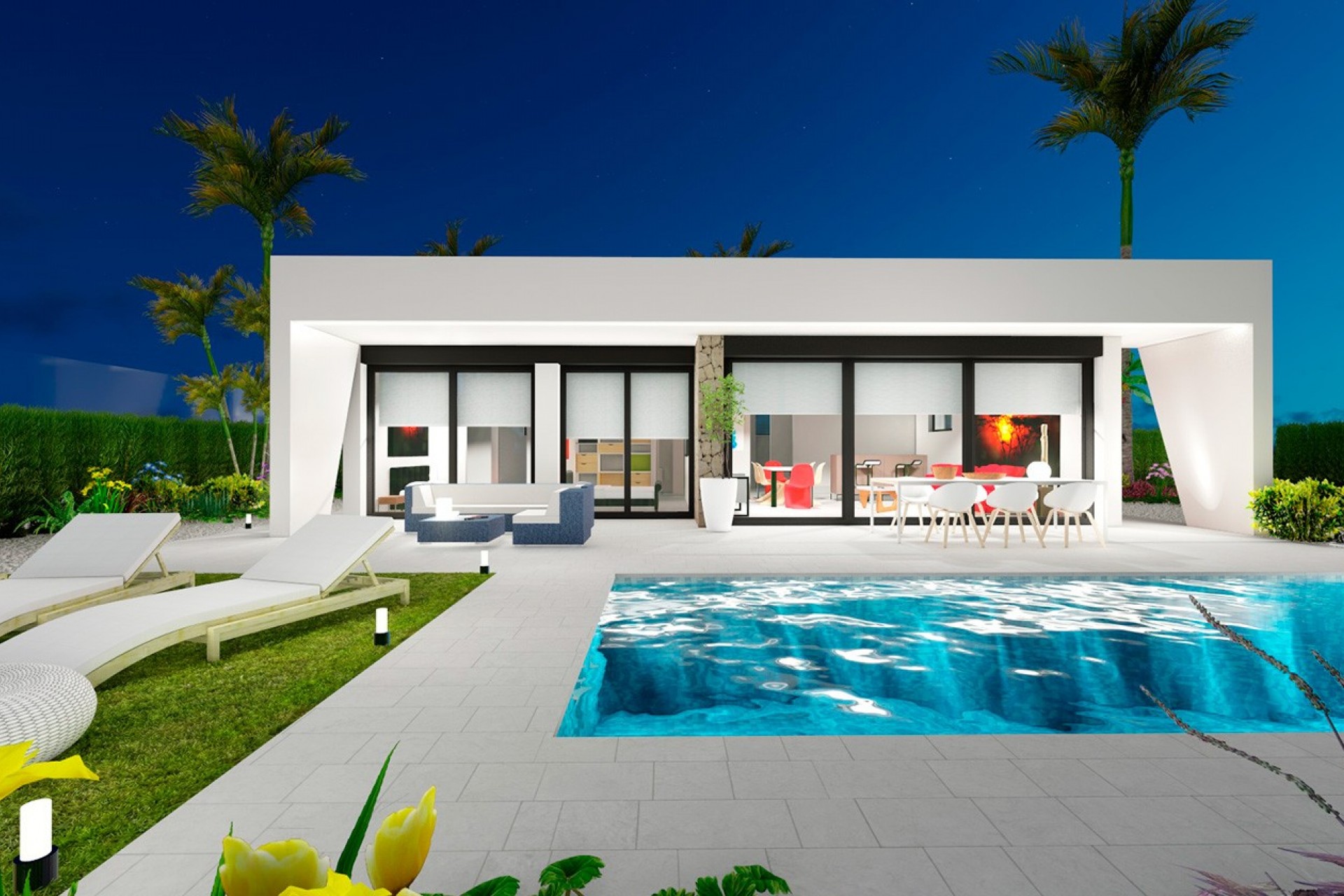 Currently there are 3 models of villas for sale: Azahar, with 2 bedrooms and 2 bathrooms Celeste and Esencia, with 3 bedrooms and 2 bathrooms. The three models are distributed on one floor, with plots of 545 meters, contemporary design and a careful memory of qualities that includes, among others, aerothermal, security door, aluminum windows with electric shutters, security door, pre installation of air conditioning ducts, or fitted kitchen and equipped with appliances.