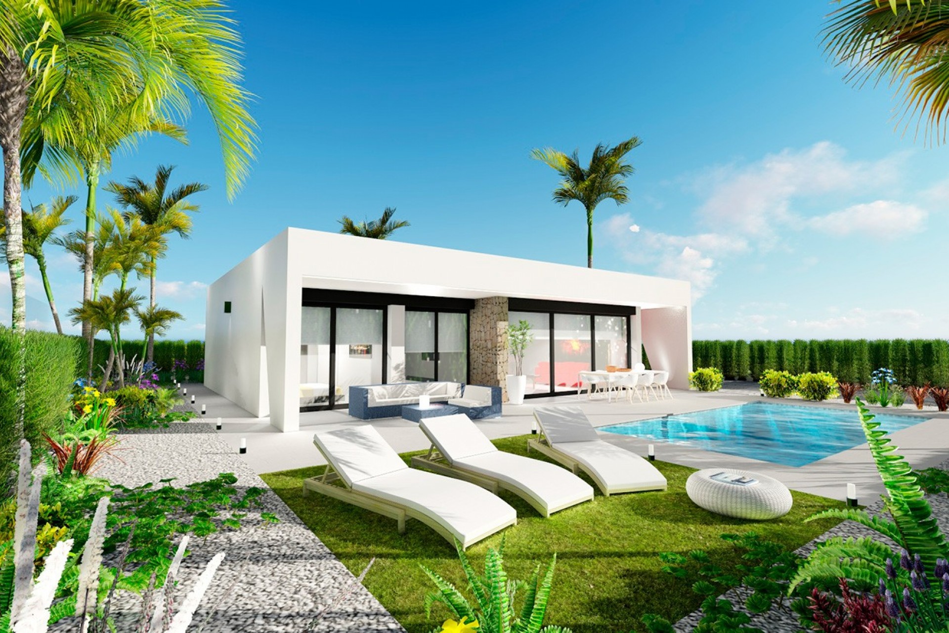 In addition, all villas include finished garden with parking area and private pool.